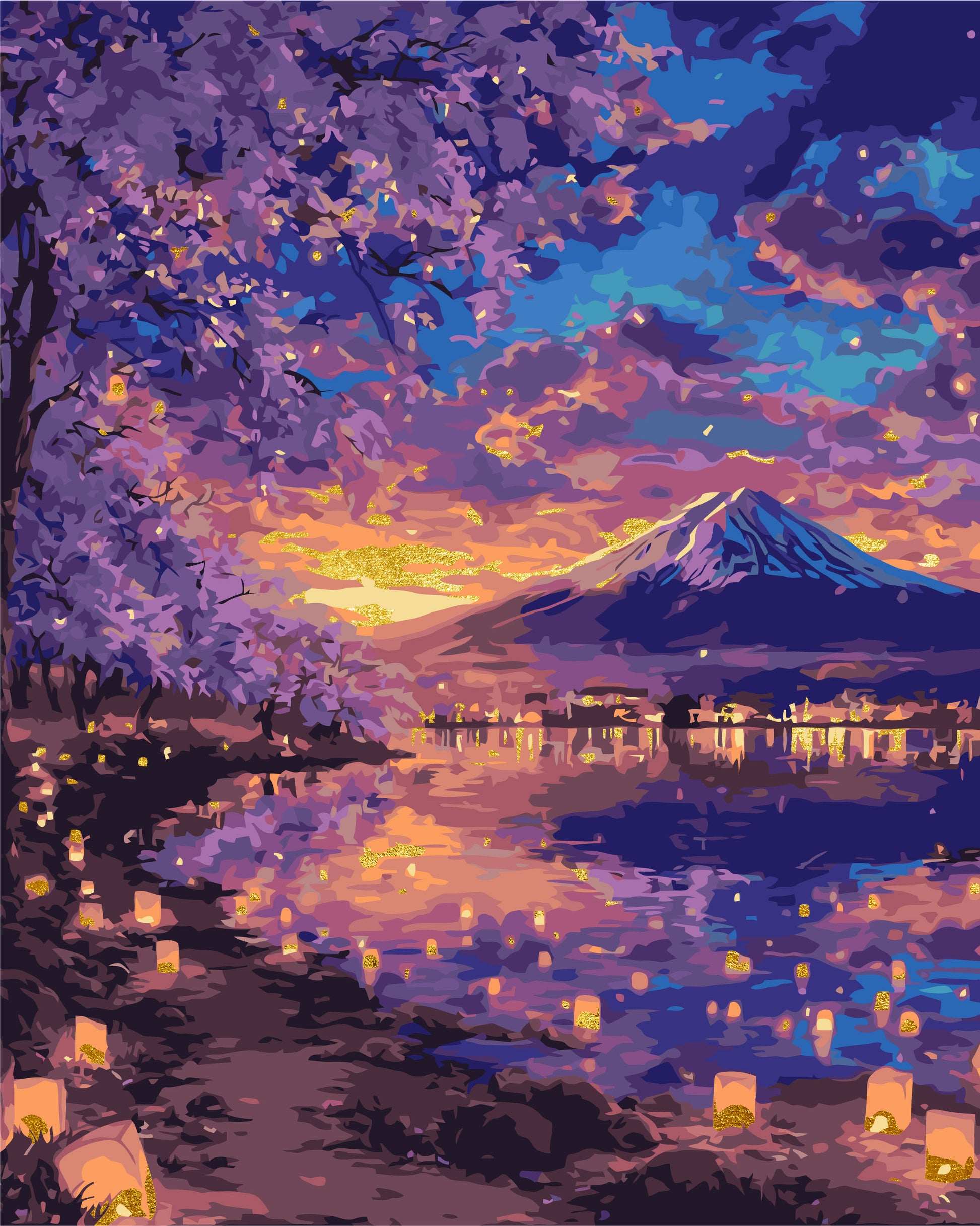 Maľovanie podľa čísel Krajina s metalickými farbami 40*50 cm LW 3555