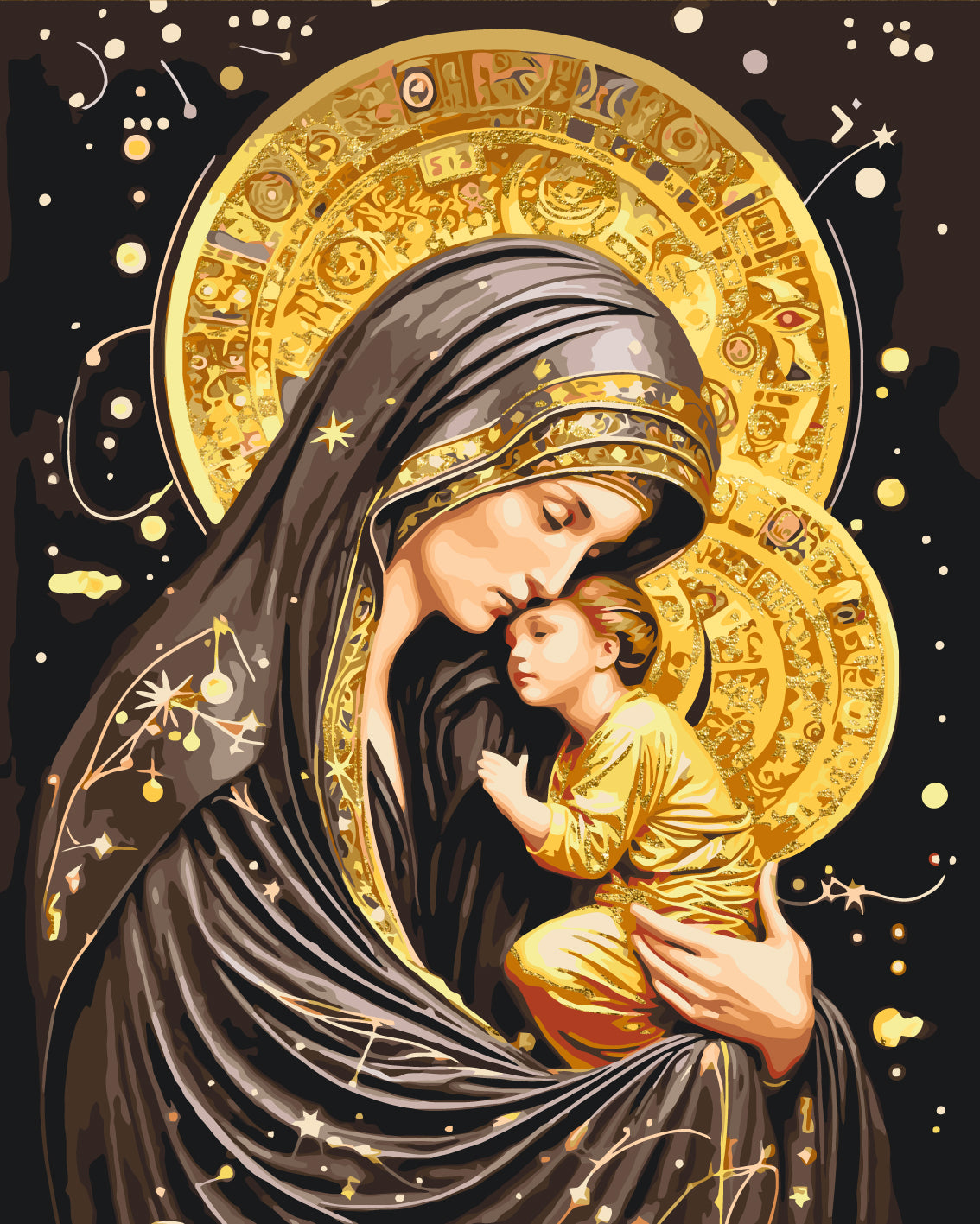 Maľovanie podľa čísel - Ikona Svätá Matka Božia s metalickými farbami 40*50 cm LW 3433