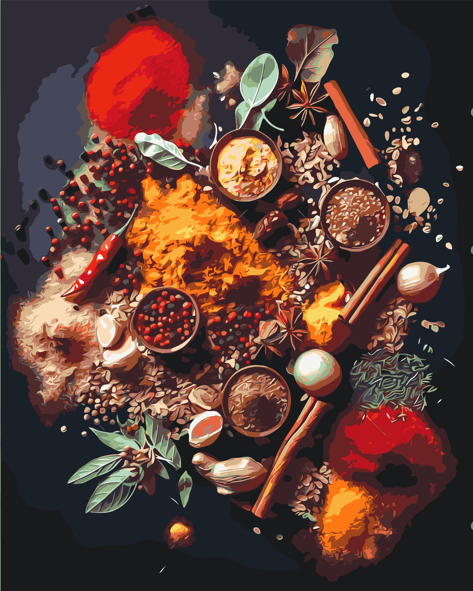 Maľovanie podľa čísel – Zátišie. Svetové koreniny 40*50 cm LW 3451