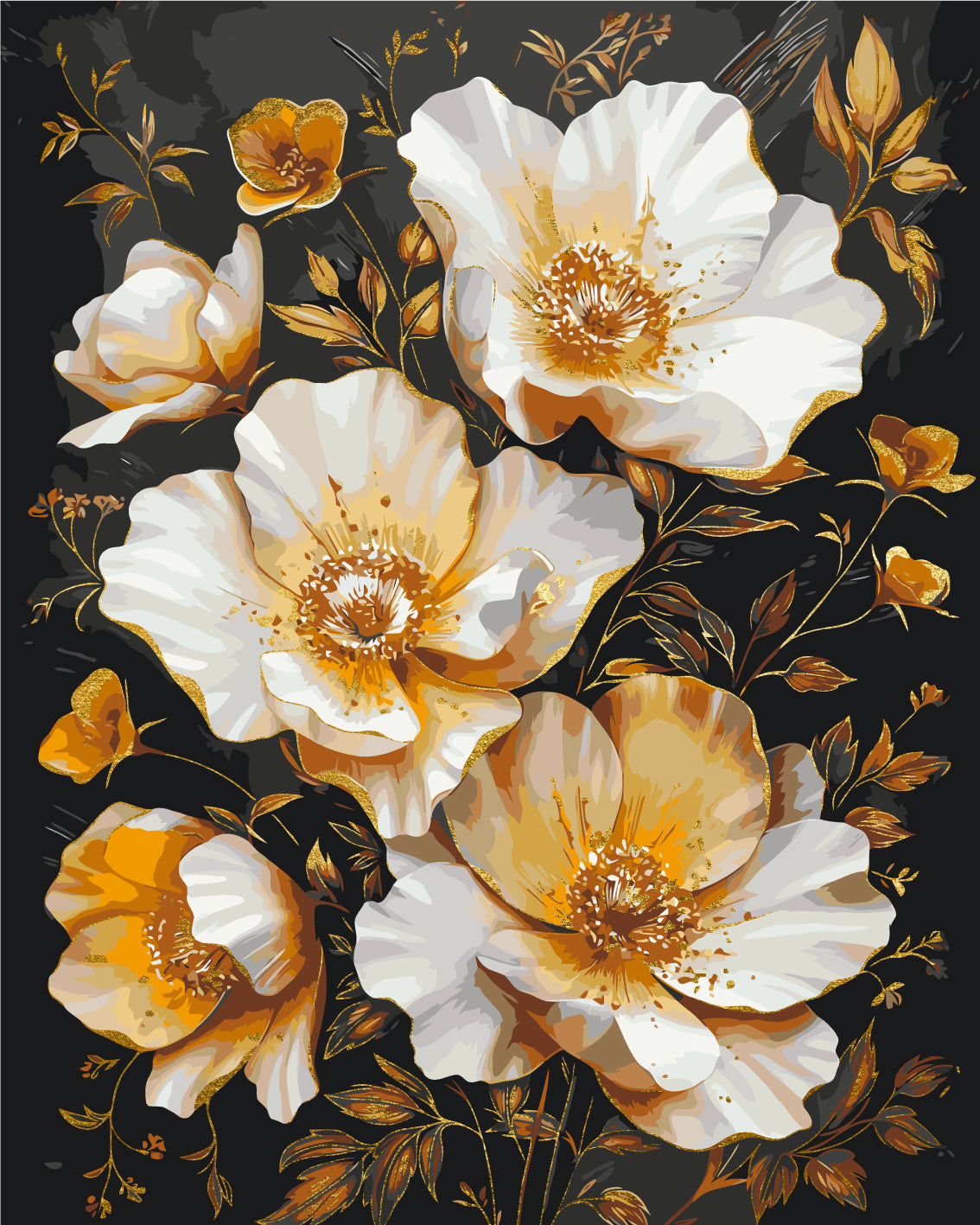 Maľovanie podľa čísel Zlaté kvety na čiernom pozadí. S metalickými farbami 40*50 cm LW 3335