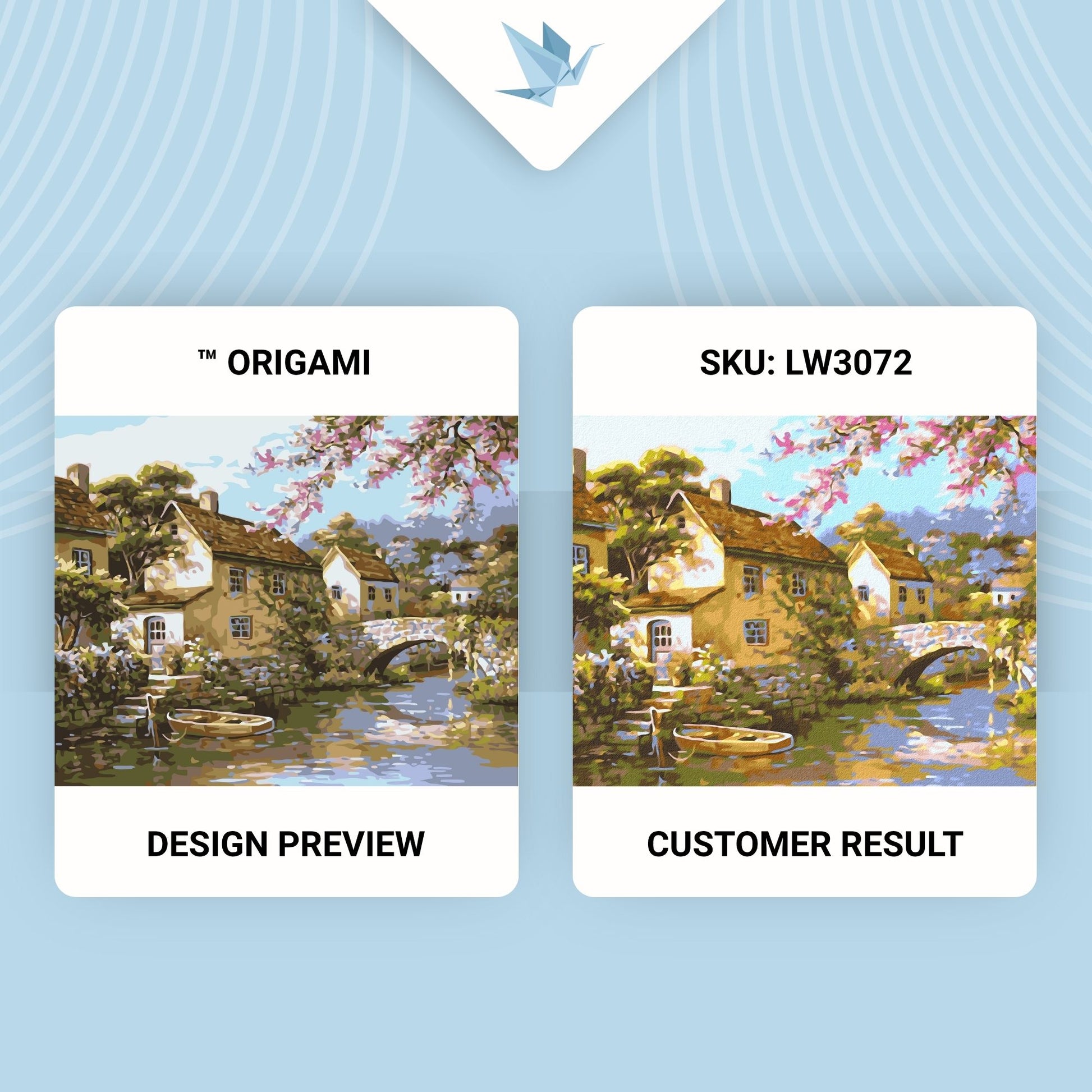 Maľovanie podľa čísel krajinka – Dedinka pri rieke 40*50 cm LW 3072