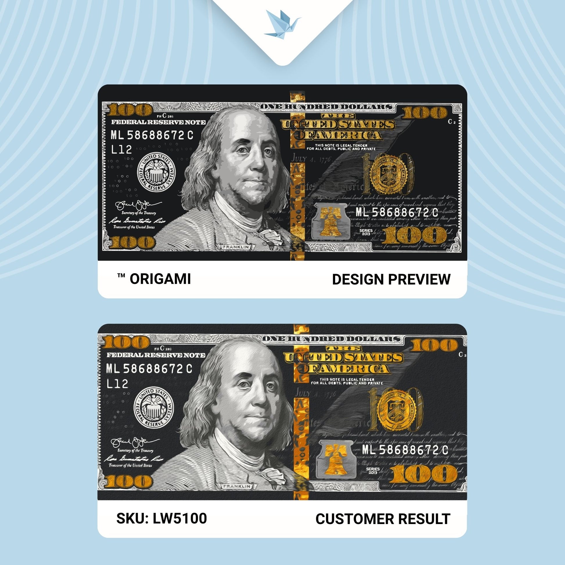 Maľovanie podľa čísel Franklin. Dolár (100 dolárov) s metalickými farbami (zlato) 40×80 cm LW 5100