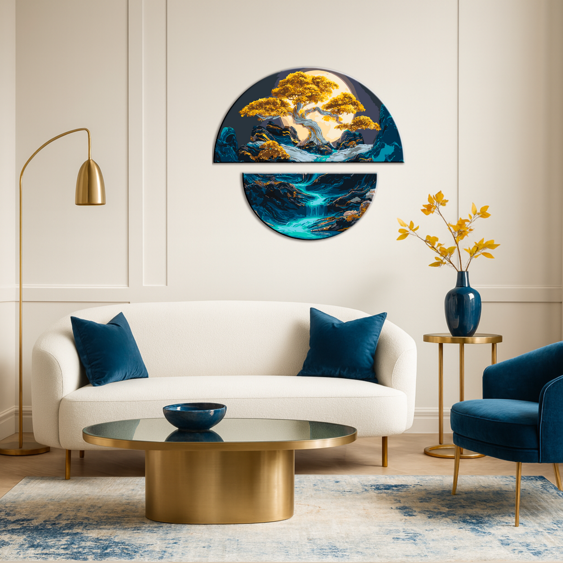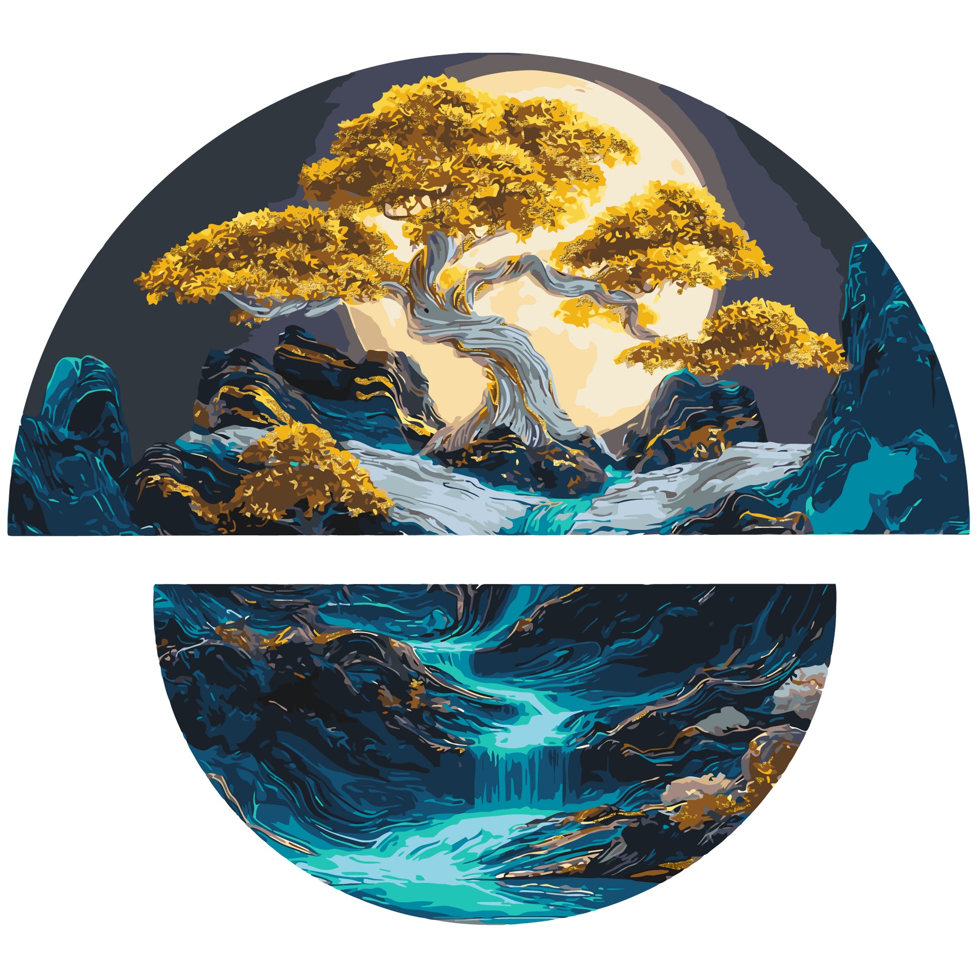 Maľovanie podľa čísel Krajina. Nočná harmónia s metalickými farbami (polkruhy) 70×70 cm OSR 1007
