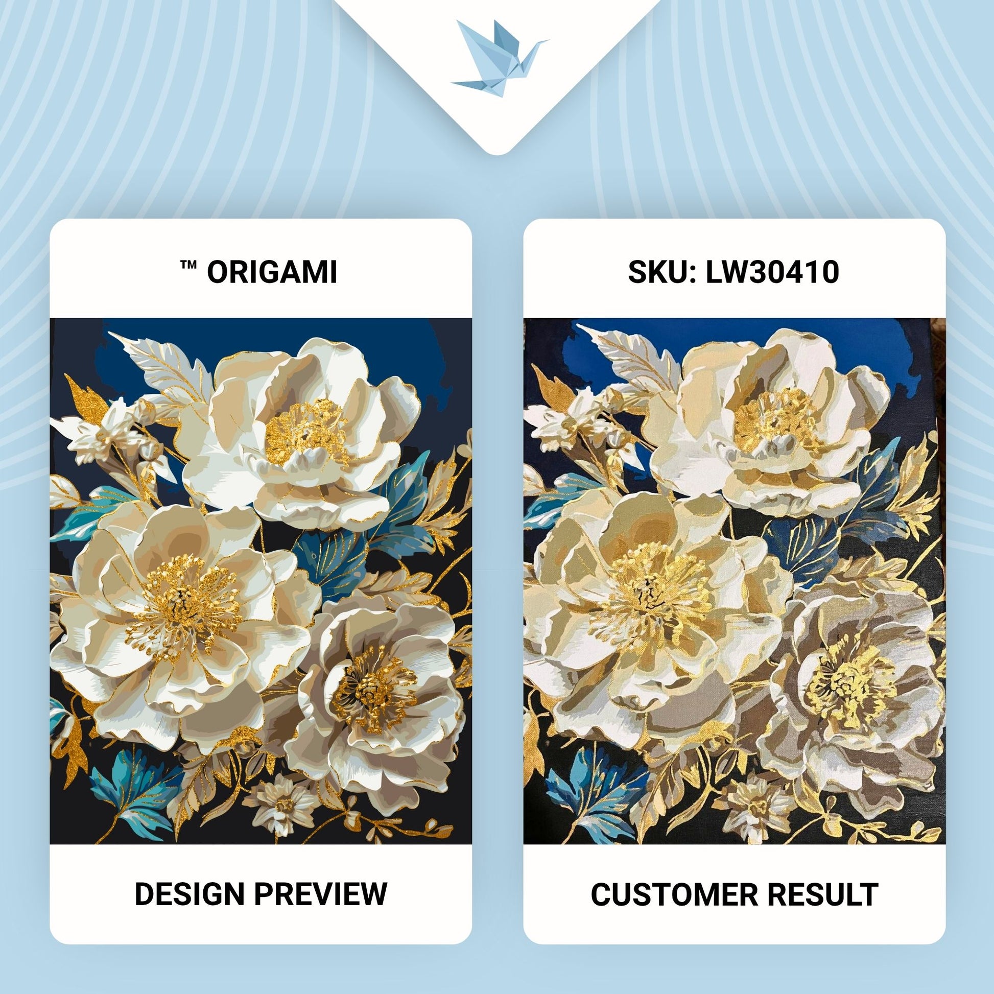 Maľovanie podľa čísel Kvety. Bielé pivónie s metalickými farbami zlato 40*50 cm LW 30410