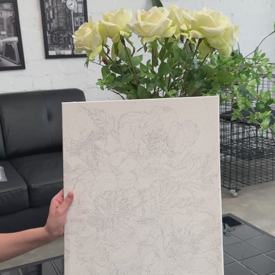 - Plátno s očíslovaným obrysom motívu natiahnuté na drevený rám (bez rámu je maľovanie veľmi nepohodlné, preto v našej ponuke nájdete iba plnohodnotné obrazy)