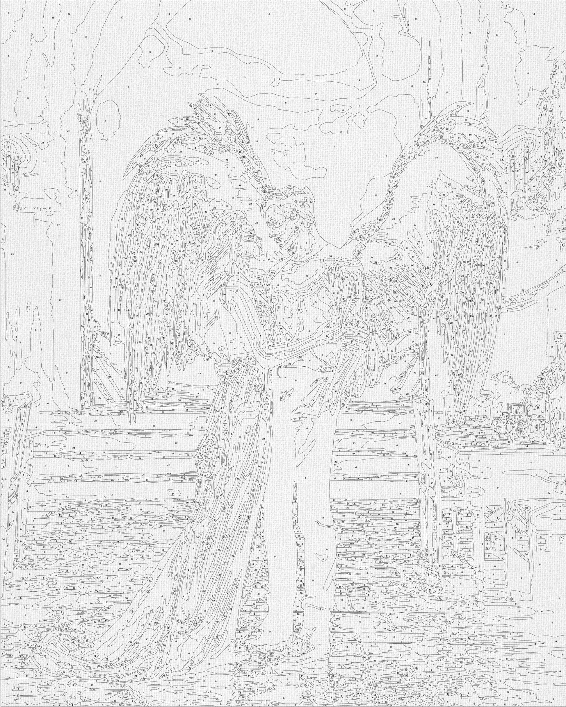 - Plátno s očíslovaným obrysom motívu natiahnuté na drevený rám (bez rámu je maľovanie veľmi nepohodlné, preto v našej ponuke nájdete iba plnohodnotné obrazy)