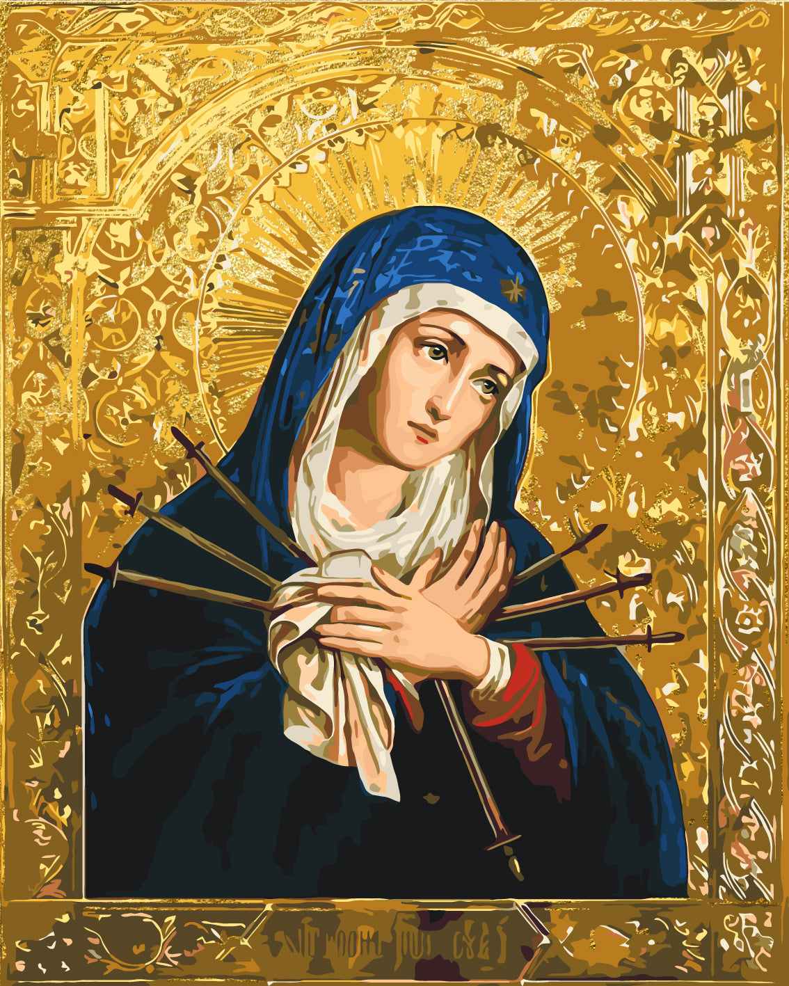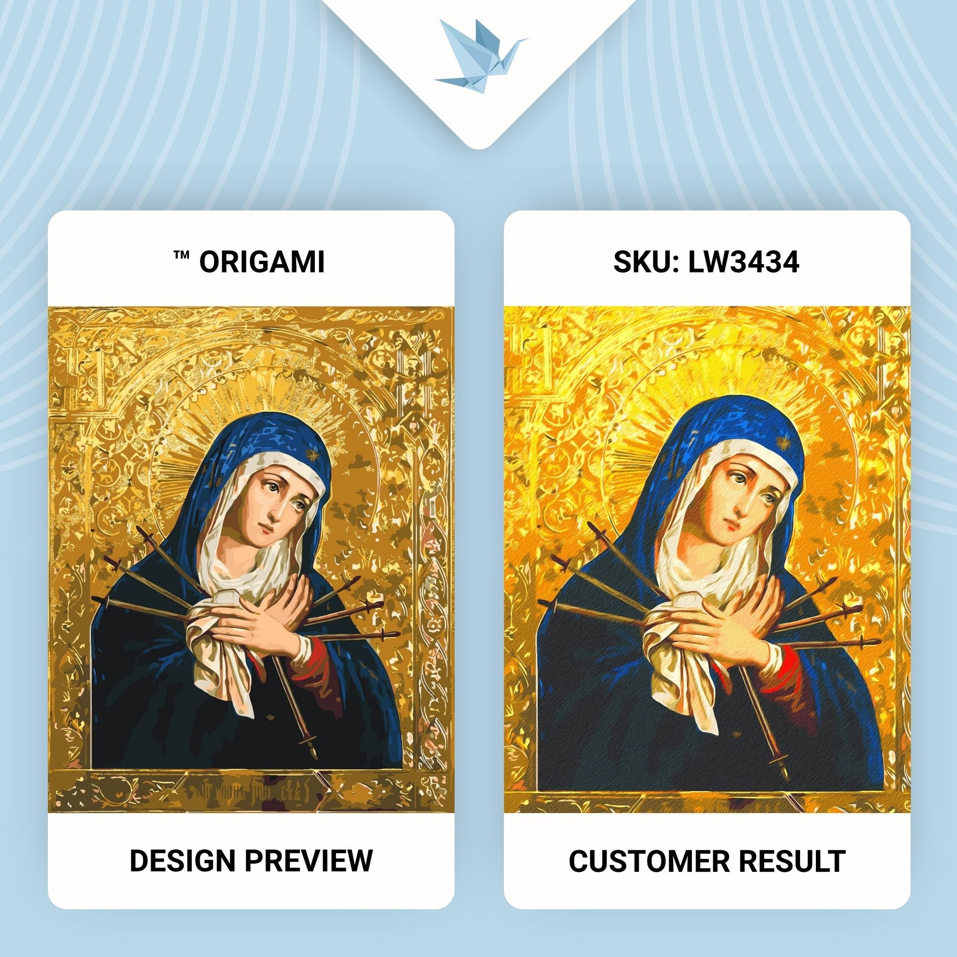 Maľovanie podľa čísel Náboženstvo. Ikona Bohorodičky „Zmäkčenie zlých sŕdc“ s metalickými farbami 40*50 cm LW 3434