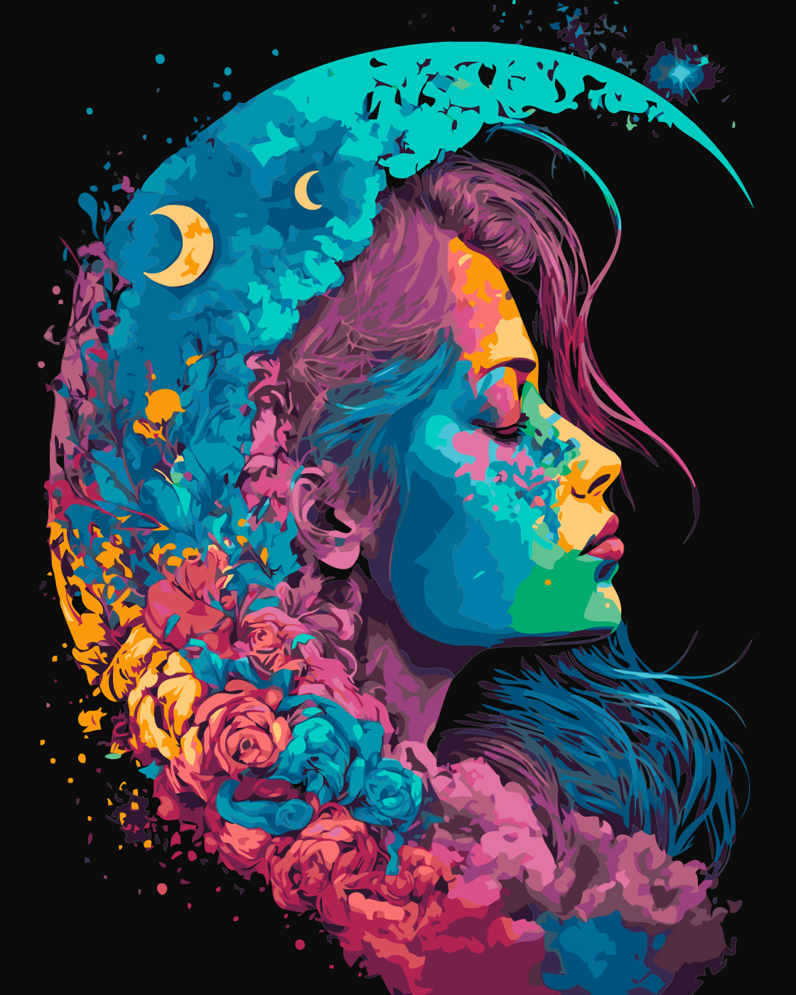 Maľovanie podľa čísel – Portrét mesačného dievčaťa. Abstrakcia 40*50 cm LW 31640