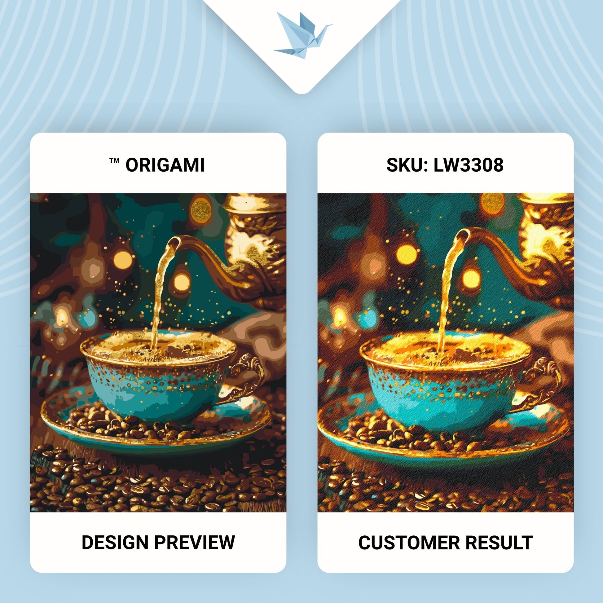 Maľovanie podľa čísel Zátišie. Káva so škoricou s metalickými farbami 40*50 cm LW 3308