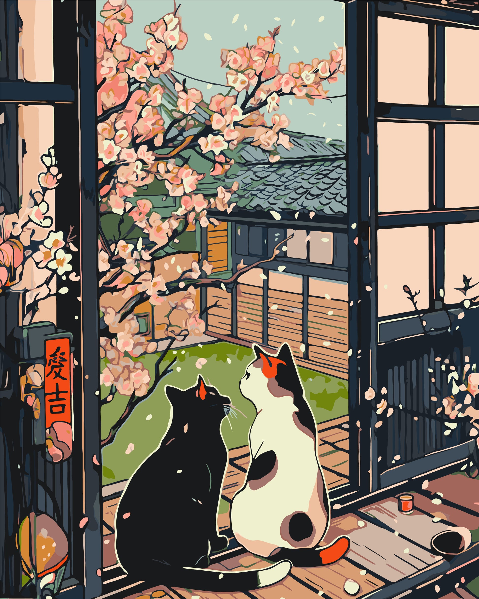 Maľovanie podľa čísel – Zvieratá. Mačky pri sakure 40*50 cm LW 3404