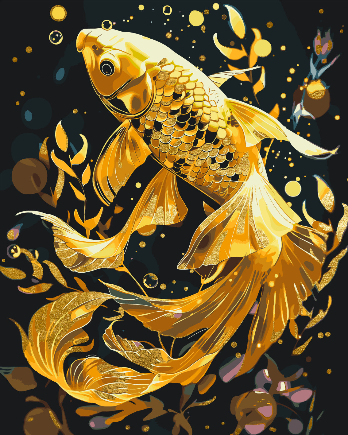 Maľovanie podľa čísel Zvieratá. Zlatá rybka s metalickými farbami 40*50 cm LW 9670
